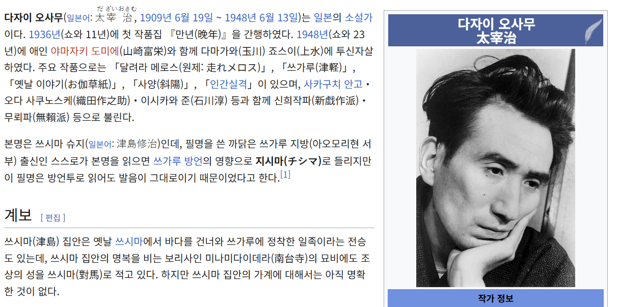 다자이 오사무(太宰治)는 일본 근대문학사에서 가장 복합적인 인물 중 하나입니다.