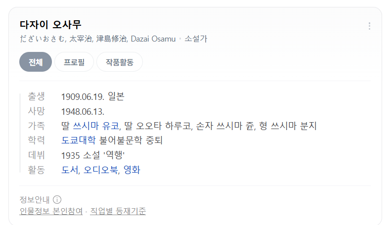 다자이 오사무는 20세기 일본 문학을 논할 때 절대 빼놓을 수 없는 인물입니다.