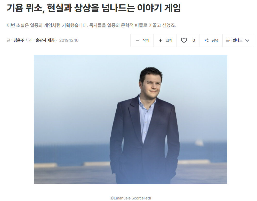 그러나 자신이 독자에게 전하고자 하는 것은 완전히 새로운 실험이 아니라 친숙한 감정을 다르게 변주하는 일이라고 말했습니다.