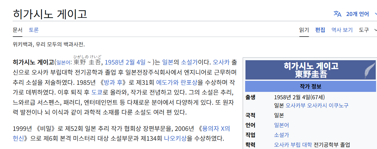 “추리소설을 통해 인간을 본다”는 그의 말처럼, 범죄보다 인간이 중심에 있는 문학. 그것이 바로 히가시노 게이고라는 작가의 진짜 매력입니다.