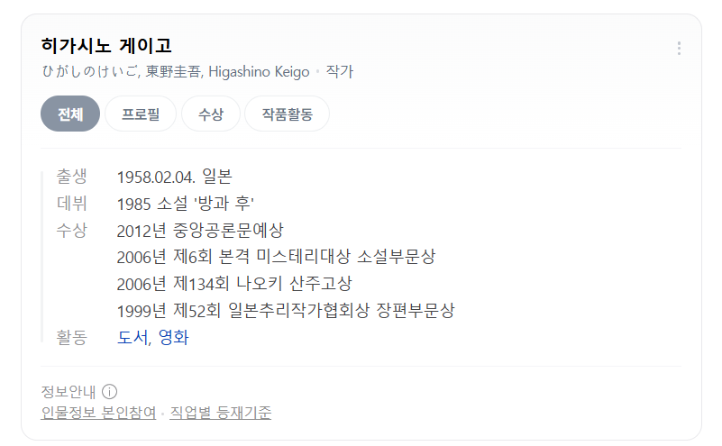 “추리소설을 통해 인간을 본다”는 그의 말처럼, 범죄보다 인간이 중심에 있는 문학. 그것이 바로 히가시노 게이고라는 작가의 진짜 매력입니다.